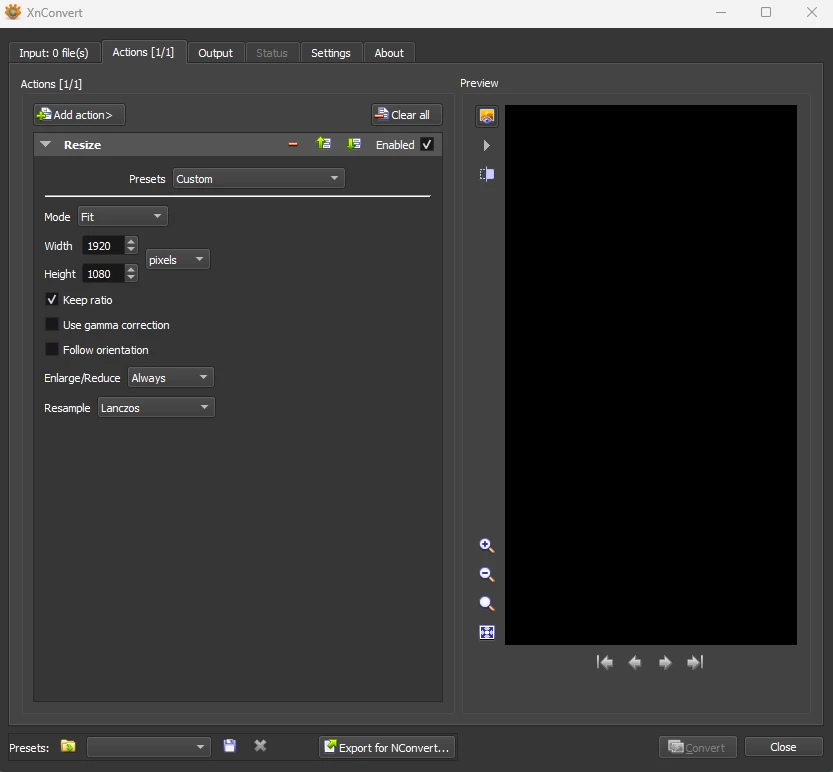 So how can you do that? There are numerous online file converters, but the vast majority of these have usage limits and subscription fees for higher usage so they aren’t ideal for a visual novel. That’s where XnConvert comes in. XnConvert is a free bulk image convertor that you can run on your PC with no limits or subscription fees. It lets you convert thousands of images in one go without any issues so it really is a vital tool in the AVN development workflow. To demonstrate how good XnConvert is, I took 53 JPEGs rendered at 4K, reduced their resolution to 1080×1920 (so they can be used in game) and converted them into AVIFs. It took 11 seconds and reduced the total file size from 303mb to 7mb.